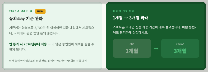더 많은 농업인이 혜택을 받을 수 있게 됐어요. 지금부터 차근차근 살펴봅시다!