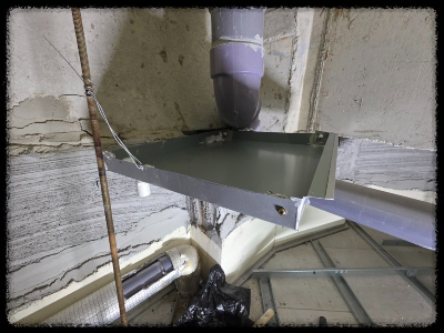 그래서 조적 일부를 제거한 뒤 작업 공간을 확보한 후, 물받이를 설치했습니다.