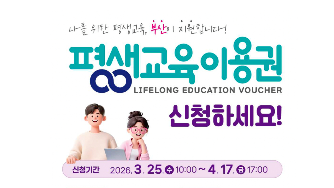 부산시(시장 박형준)가 2026년 부산 평생교육이용권 신청방법 및 접수 일정을 공식 발표했습니다.