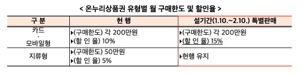 → 온누리 상품권 15%할인으로 상향! - 한도: 월 최대 200만 원까지 구매 가능.